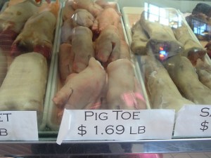 With it being early in the morning and all, we decided to bypass, but next time, we will have to try out some chocolate pig candy. I really love the Essex Street Market. They have so much awesome local produce to choose from, it’s really like being a kid in a really healthy candy store. The meat counters have a ton of stuff that you could only dream about. And, with this blog being all about pork this week, how could I not post another photo of something that I’ve eaten before and yet, gets over looked so many times?