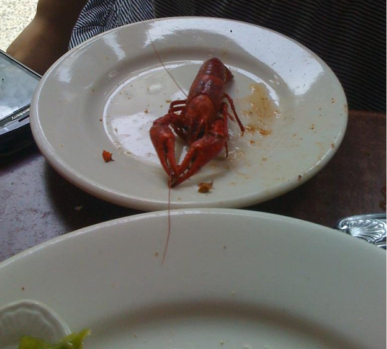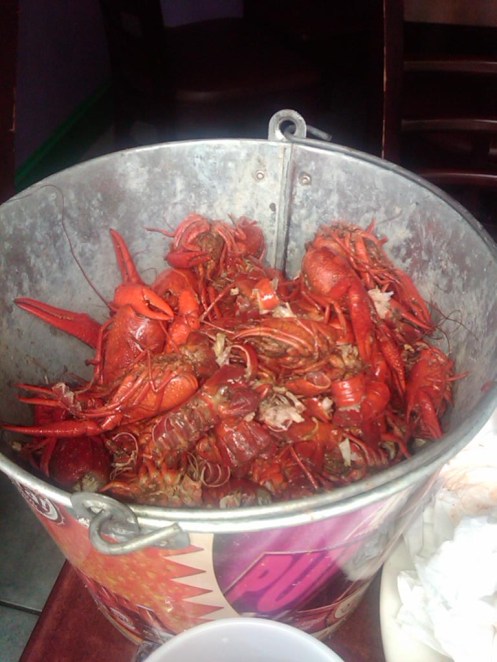 Unsure of where to go for some lunch today (it’s easy to tire out of all the usual stuff around the neighborhood), we decided to head to a place right around the corner for some good ol’ New Orleans hospitality. Mara’s Homemade: never a disappointment. This was maybe our third time there. I had gotten an email about crawfish being available. Being in an adventurous mood, we ordered the 3lbs. crawfish boil and a shrimp po’ boy. This was my first time cracking open crawfish. It was both messy and fun. I got the hang of it really quickly. As you’ll see, they didn’t skimp on the size of these suckers.